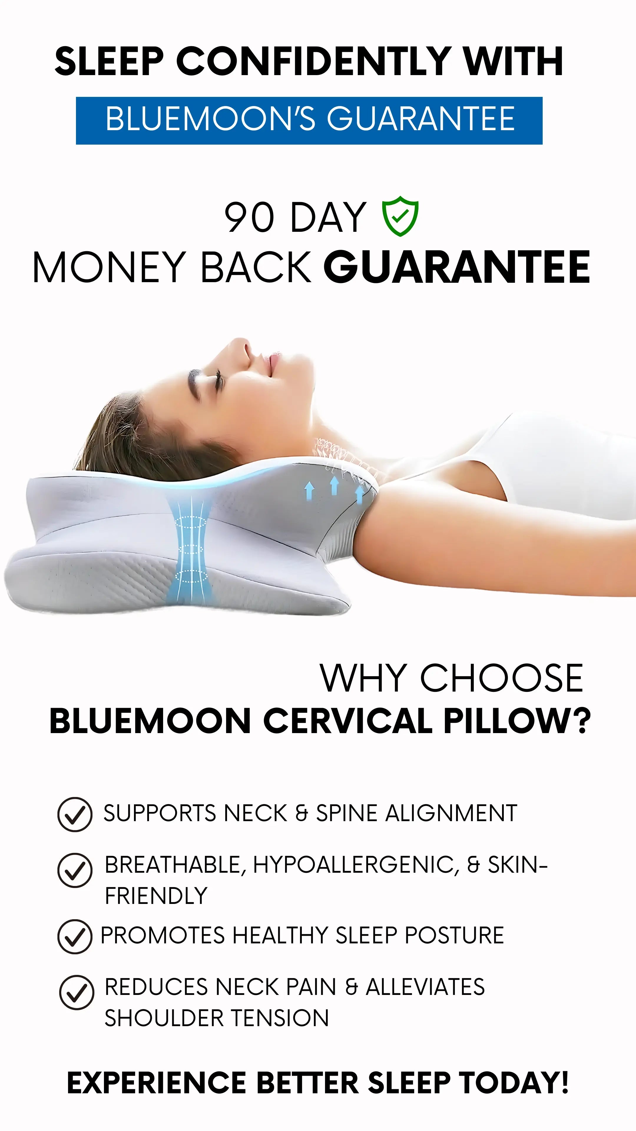 That’s why we’ve designed the BlueMoon Cervical Pillow—a solution to ease your neck and shoulder pain, so you can wake up feeling refreshed, pain-free, and ready to conquer your day.